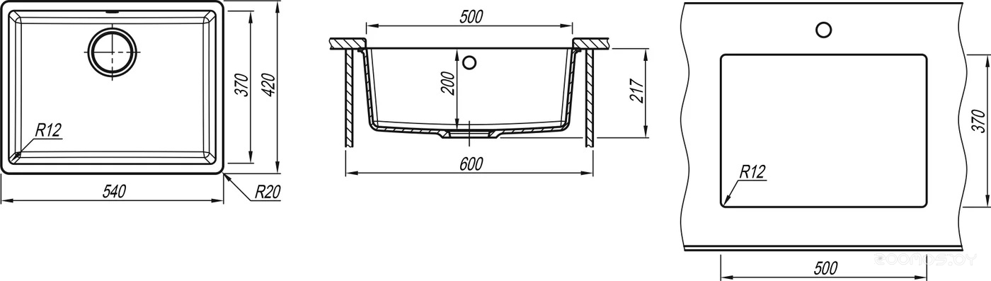 Ширина мойки: 54 см