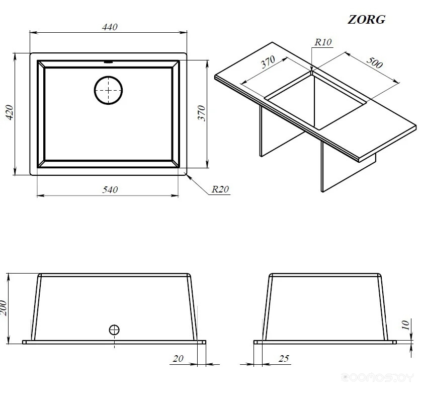 Установка: над столешницей, под столешницу