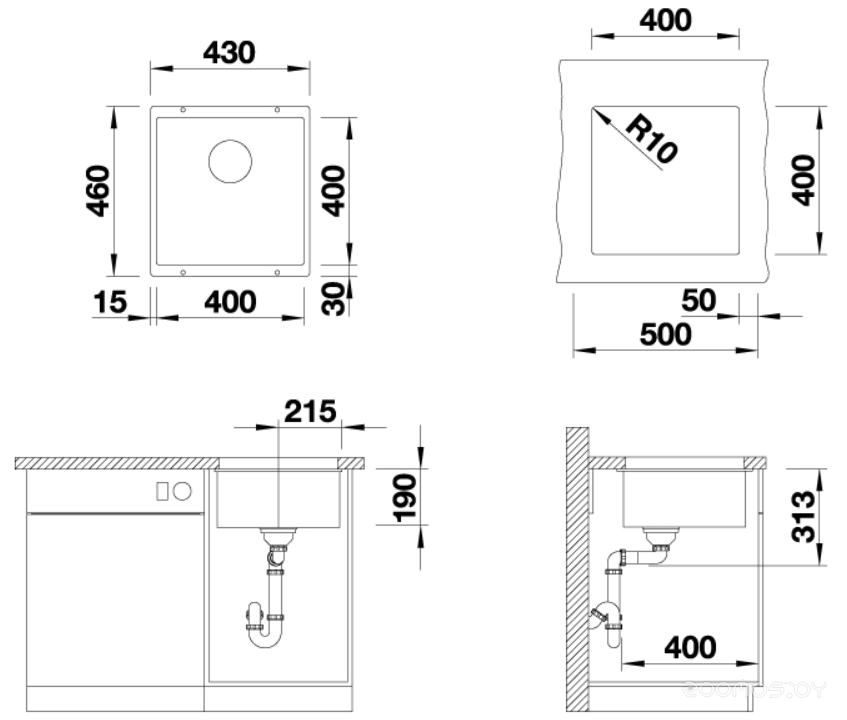 Установка: врезная, под столешницу