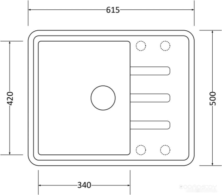 Ширина мойки: 61.5 см