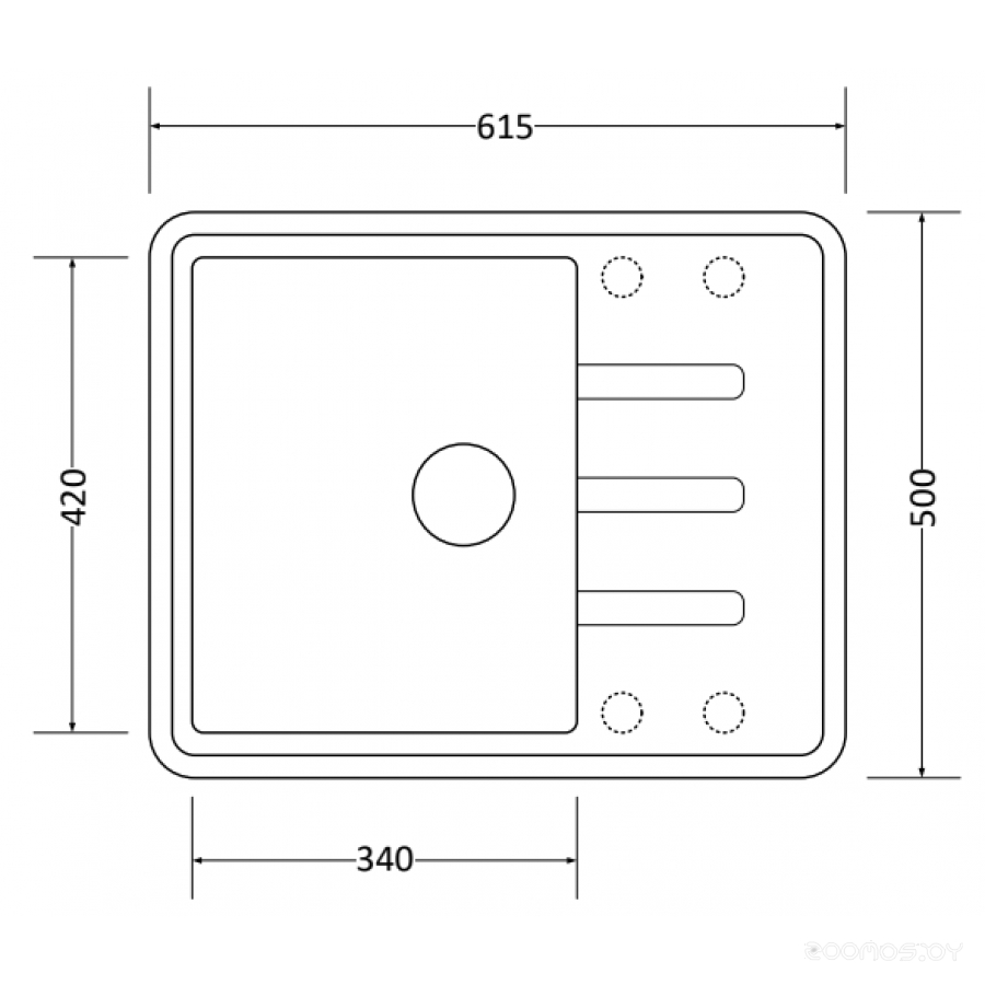 Ширина мойки: 61.5 см