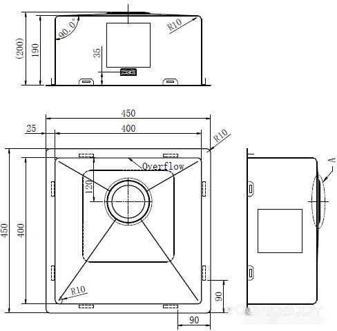 Диаметр сливного отверстия: 3.5 "