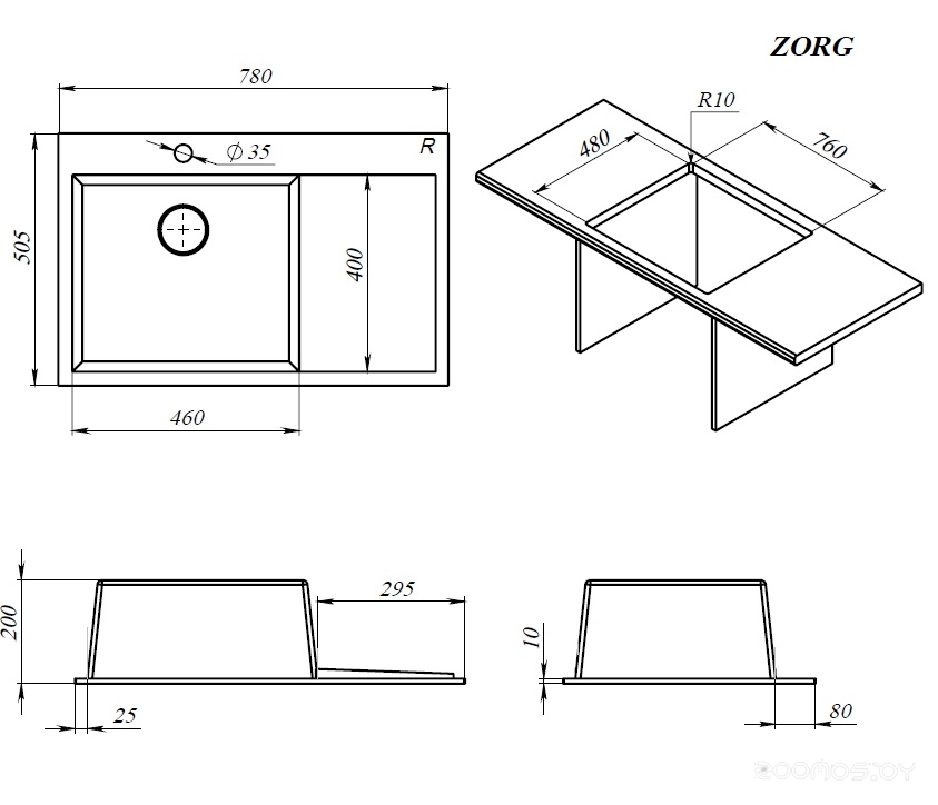 Ширина мойки: 78 см