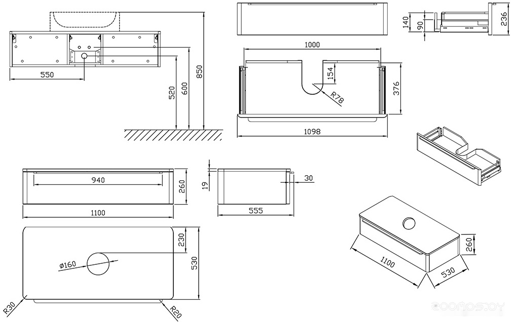 Тип: тумба под умывальник