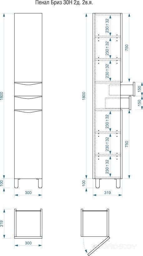 Vela Шкаф-пенал Vela Бриз 30Н2 (двери и ящики) петли правые RS623468