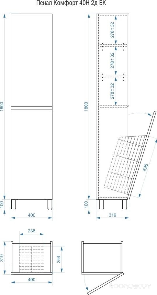 Vela Шкаф-пенал Vela Мира 40НБК (бельевая корзина) петли правые RS623489