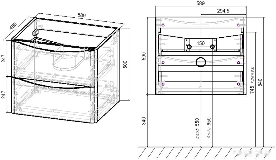 Vincea Тумба под умывальник Paola 60 VMC-2P600VO