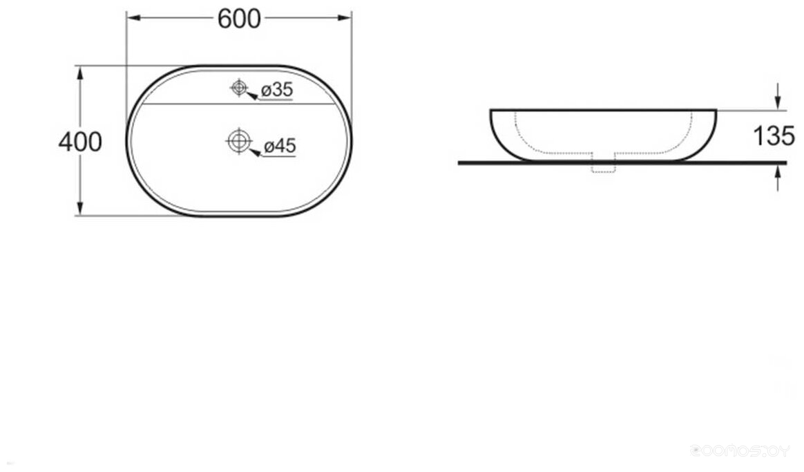 Отверстие под перелив: нет