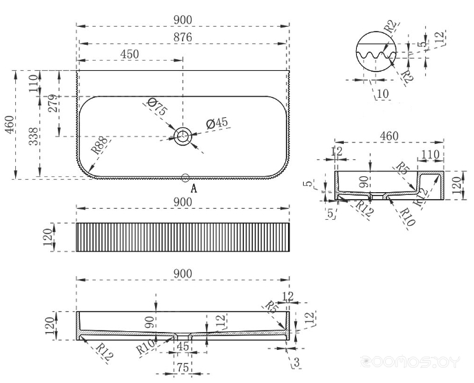 Умывальник Vincea Solid Surface VWB-6SG90MW