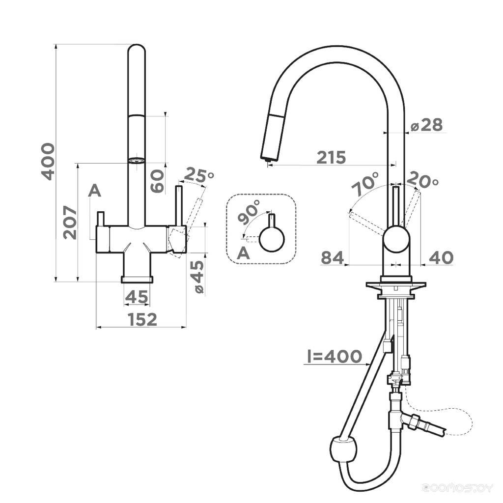 Длина излива: 215 мм