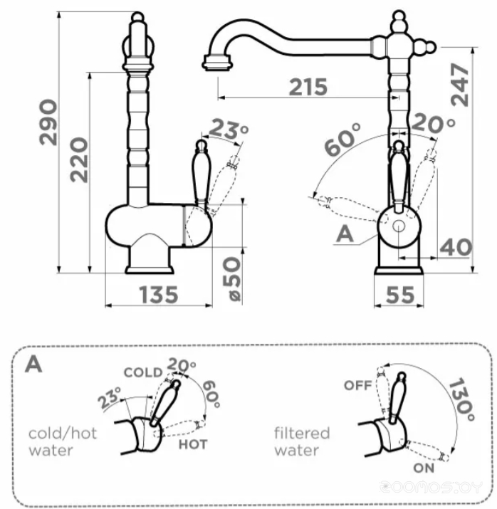 Длина излива: 215 мм