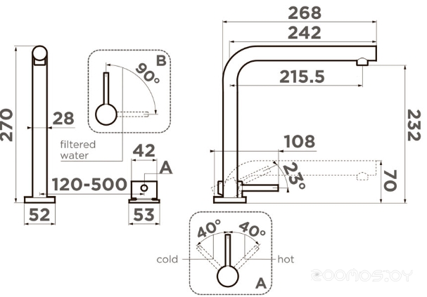 Высота излива: 232 мм