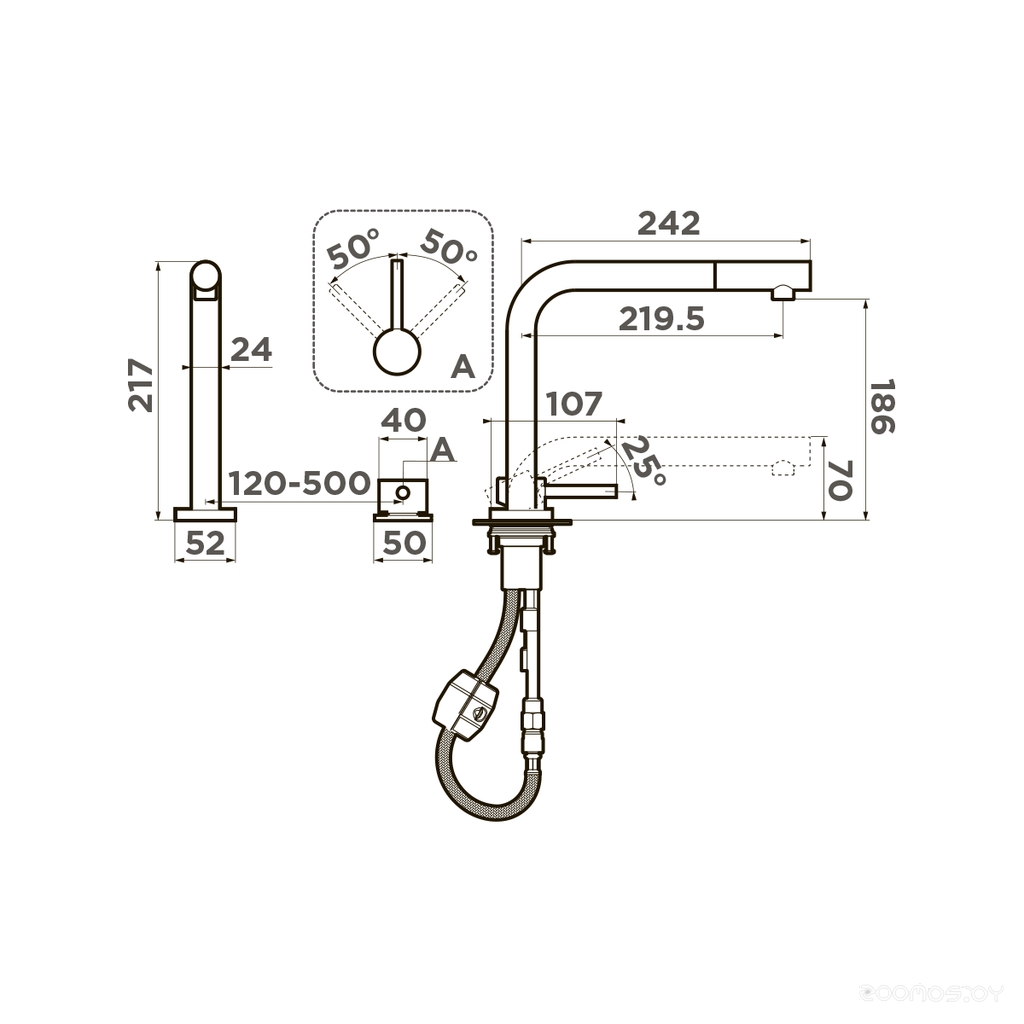 Длина излива: 242 мм