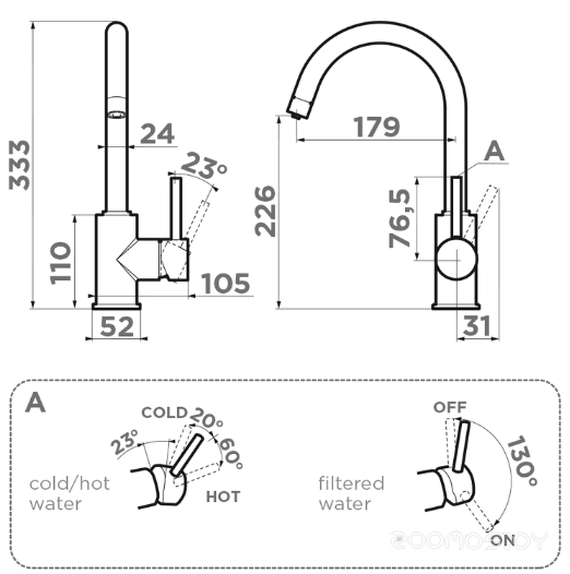 Высота излива: 226 мм