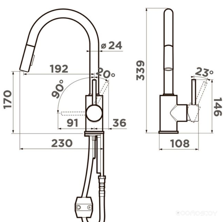 Длина излива: 170 мм