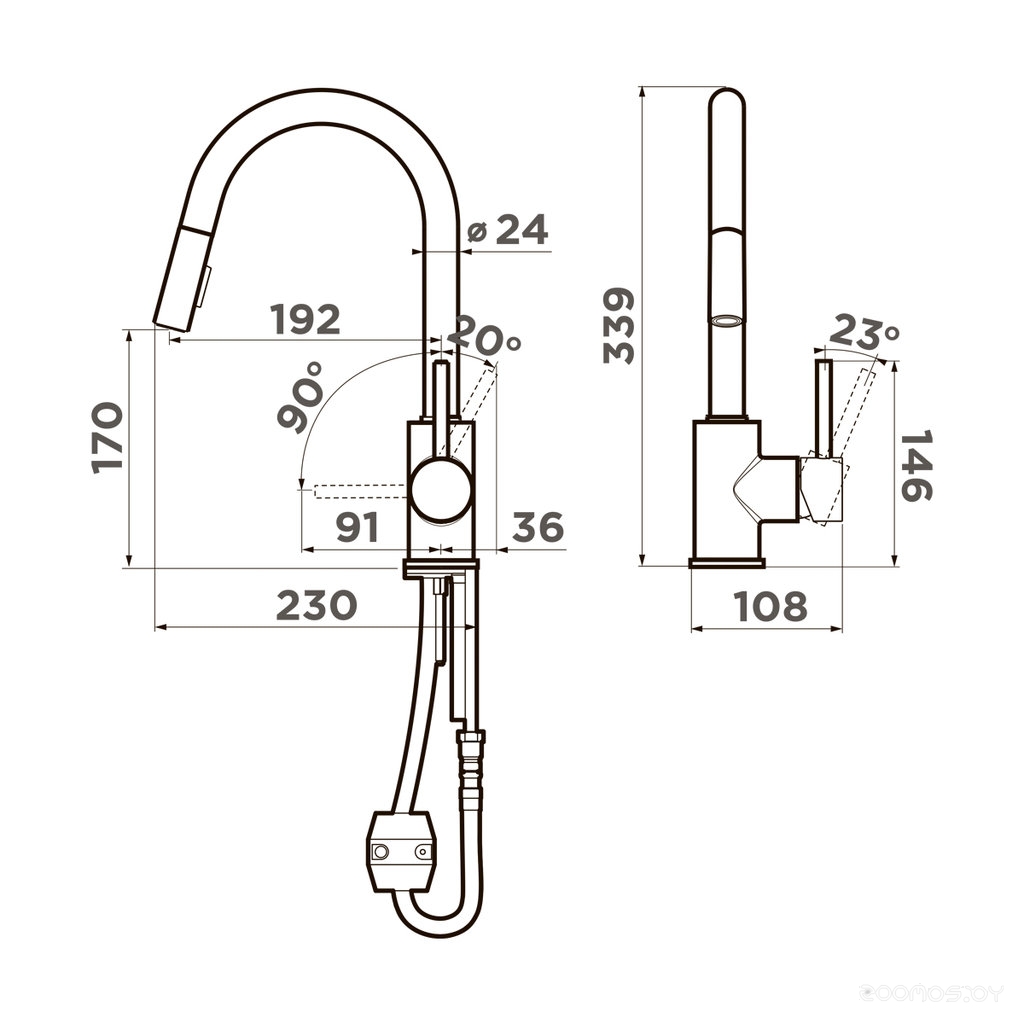 Длина излива: 170 мм