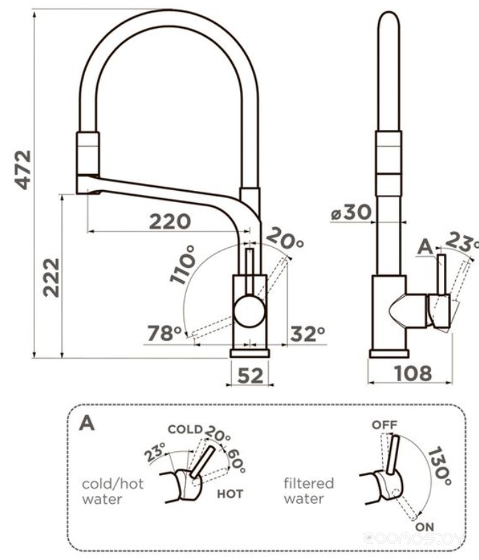 Высота излива: 222 мм