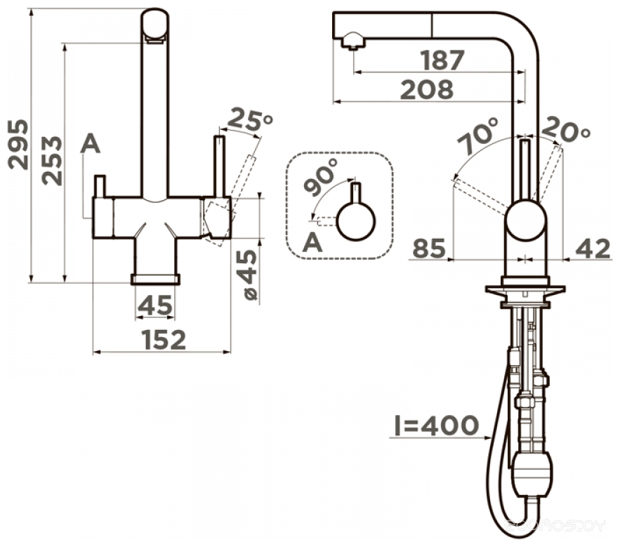 Высота излива: 253 мм