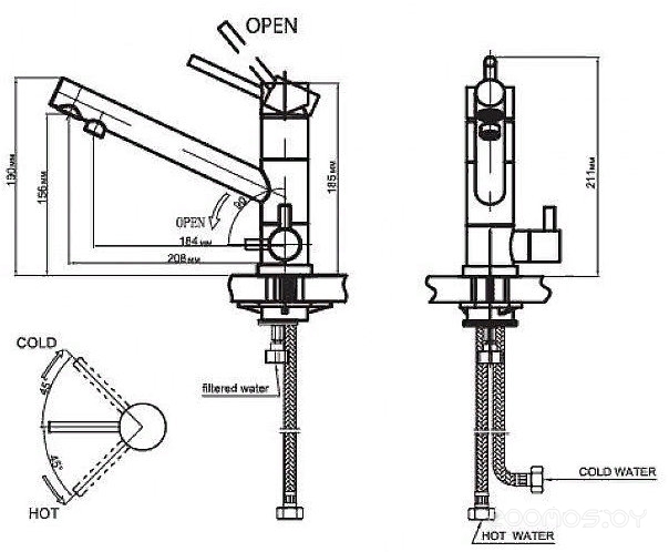 Длина излива: 208 мм