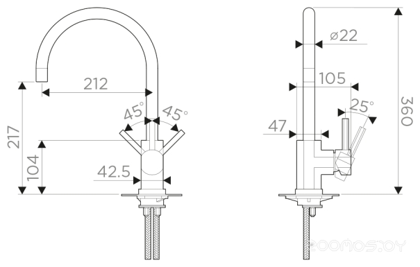 Смеситель Omoikiri Wakayama-BN нержавеющая сталь 4994244