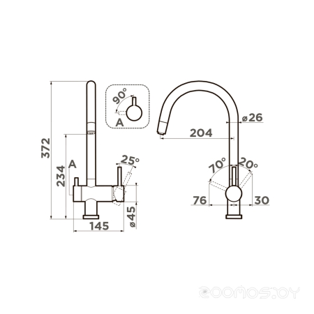 Длина излива: 205 мм