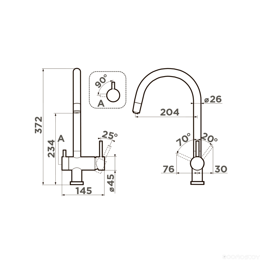 Высота излива: 234 мм