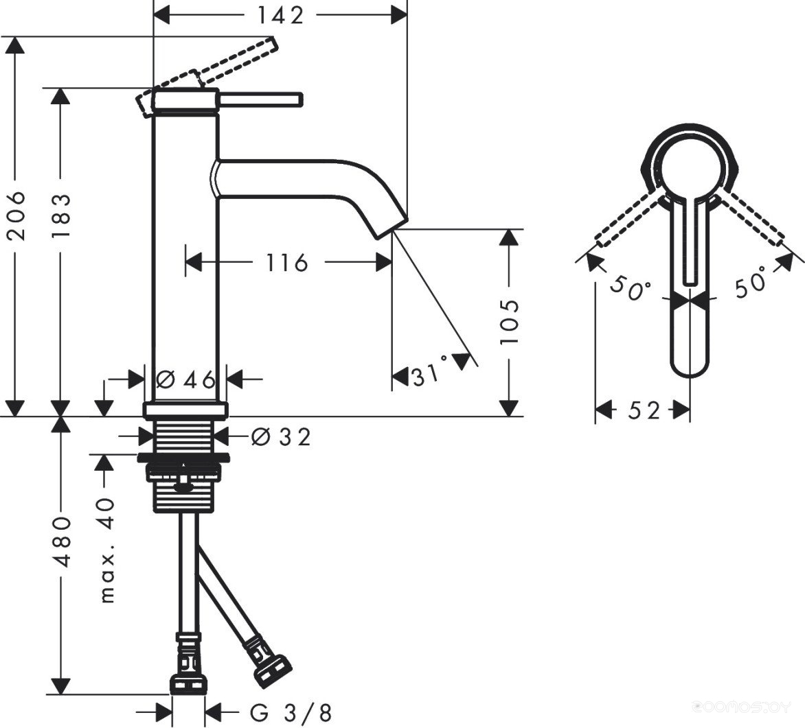 Высота излива: 105 мм
