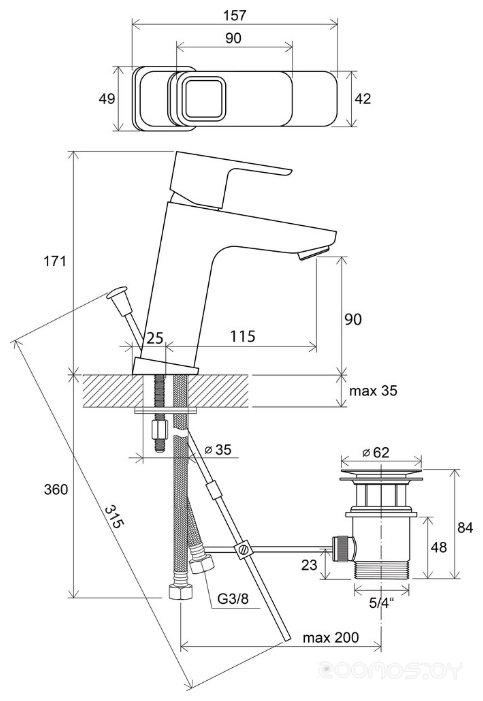 Высота излива: 90 мм