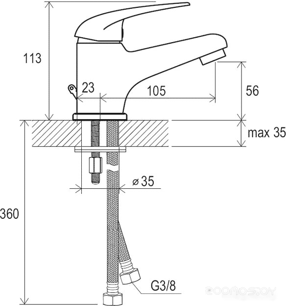 Длина излива: 105 мм