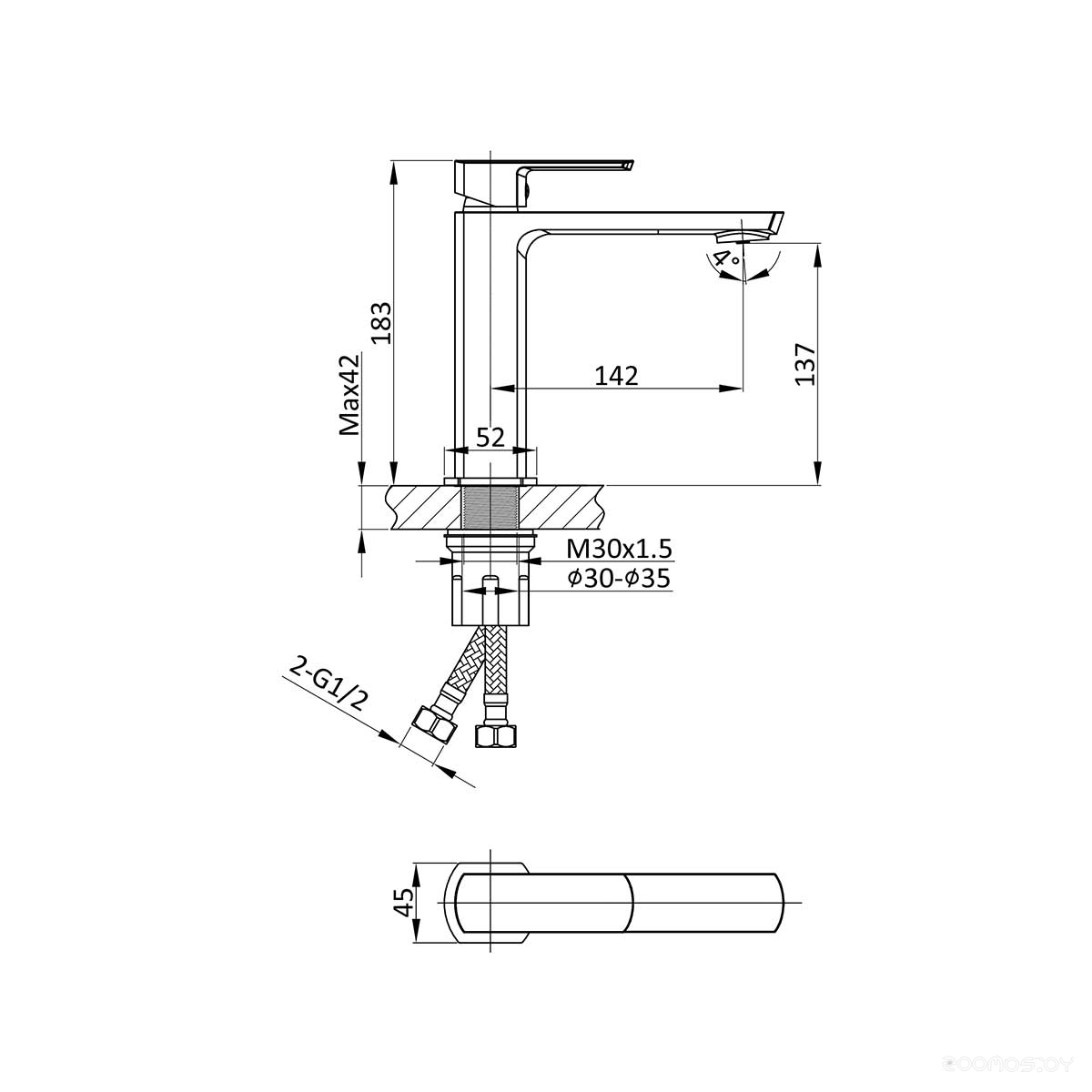 Длина излива: 142 мм