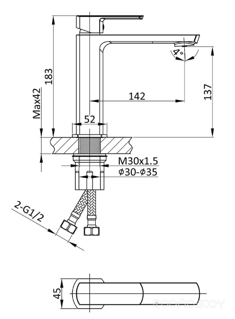 Длина излива: 142 мм