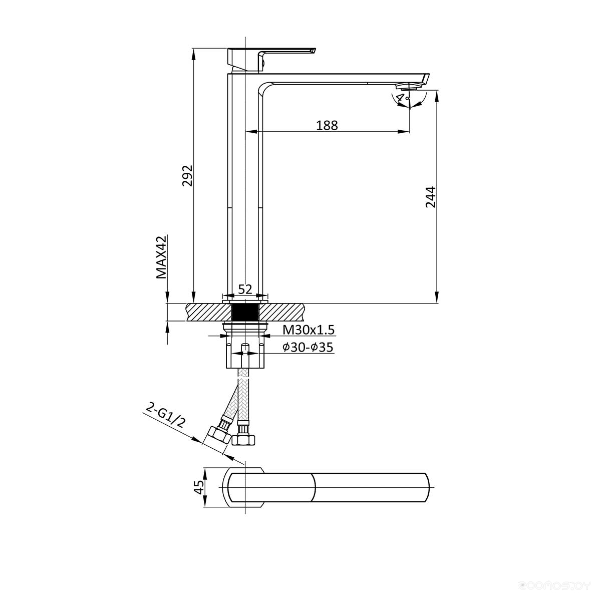 Длина излива: 188 мм