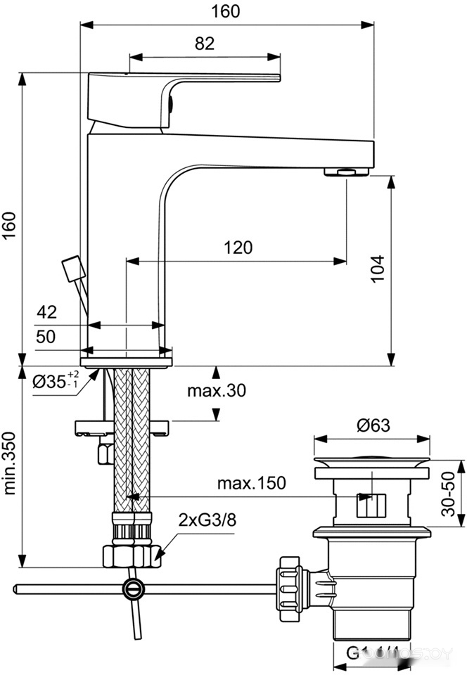 Высота излива: 104 мм