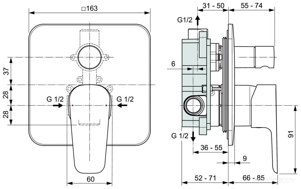 Тип установки: скрытый