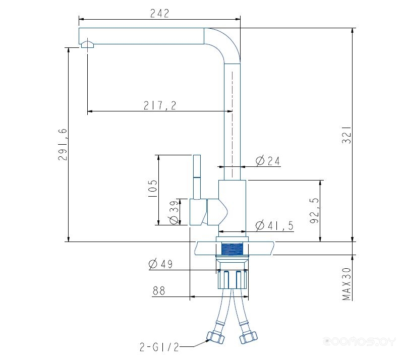 Высота излива: 260 мм