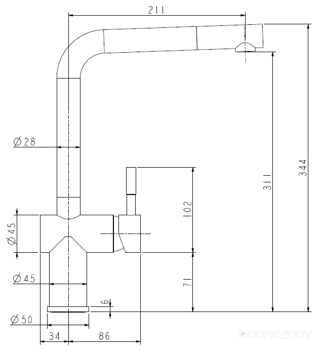 Длина излива: 211 мм