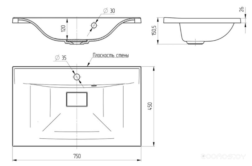 Умывальник Vincea VCB-3M750W