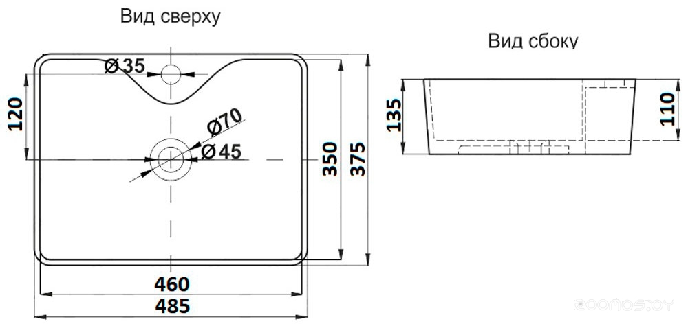 Отверстие под перелив: нет