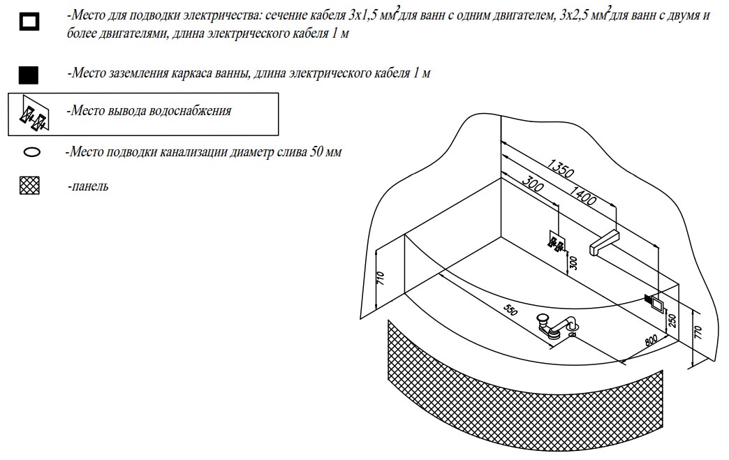 Эргономичный комфорт и экономия места. Угловая конструкция позволяет эффективно использовать обычно «мёртвый» угол помещения, предоставляя при этом достаточно пространства для удобного расположения внутри просторной чаши.