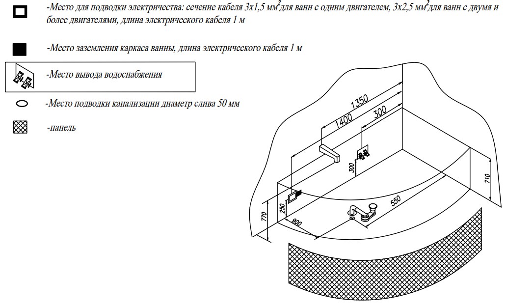 Эргономичный комфорт и экономия места. Угловая конструкция позволяет эффективно использовать обычно «мёртвый» угол помещения, предоставляя при этом достаточно пространства для удобного расположения внутри просторной чаши.