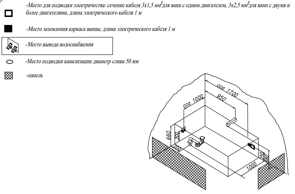 Глубина ванны: 50 см
