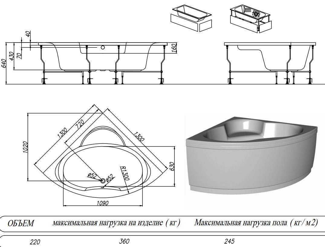 Эффективное использование пространства. Угловая форма квадратных размеров (120x120 см или 130x130 см) экономит полезную площадь, идеально подходя для помещений стандартной планировки.