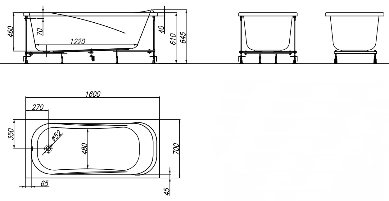 Проверенная классическая форма. Традиционная прямоугольная форма с оптимальной глубиной (46 см) и углом наклона проверена десятилетиями и обеспечивает наиболее привычное и комфортное положение тела для расслабления.