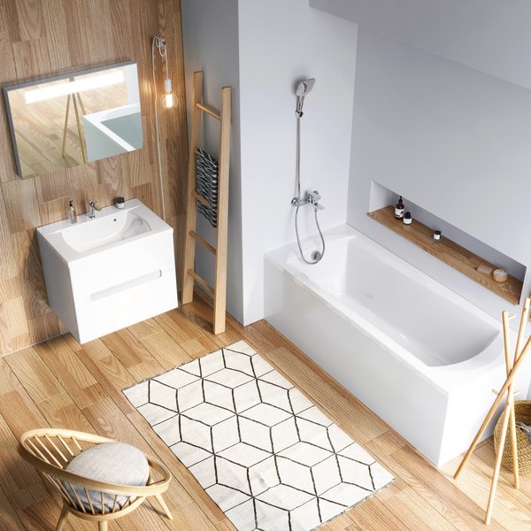 Откройте новый уровень комфорта с ванной Ravak Domino. Её уникальная конструкция — прямоугольный корпус с овальной внутренней чашей — создана для вашего расслабления. Вертикальные суженные борта увеличивают внутренний объем, делая ванну вместительной, а широкое плоское дно обеспечивает уверенную опору и безопасность при приеме душа.