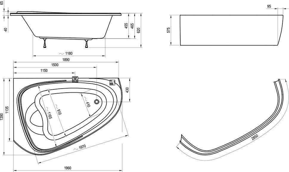 Хотите большую ванну для двоих, но кажется, что в углу не хватит места? Асимметричная ванна LoveStory II ломает стереотипы. Это уникальный гибрид угловой и прямоугольной модели: её чаша расположена под углом, что даёт вам максимальную внутреннюю длину для комфорта двоих, сохраняя при этом компактность установки в угол. Идеальный баланс между габаритами и простором.