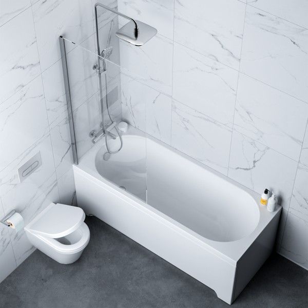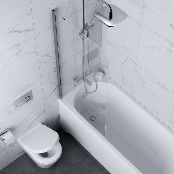 Готовое решение для душа: Для создания аккуратной душевой зоны достаточно дополнить ванну стеклянной шторкой, которая защитит пространство от брызг.