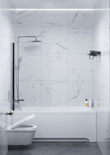 Готовое решение для душа: Для создания аккуратной душевой зоны достаточно дополнить ванну стеклянной шторкой, которая защитит пространство от брызг.