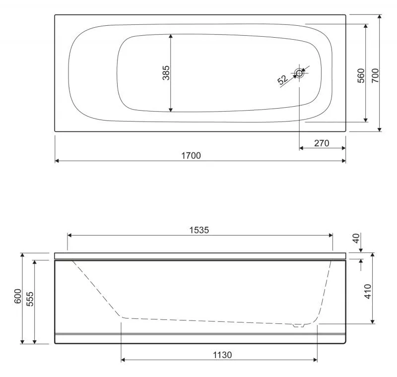 Глубина ванны: 41 см