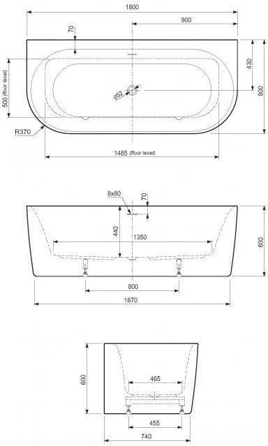 • Простор и комфорт. Удлинённая чаша 180 см и глубина 44 см для полноценного отдыха.