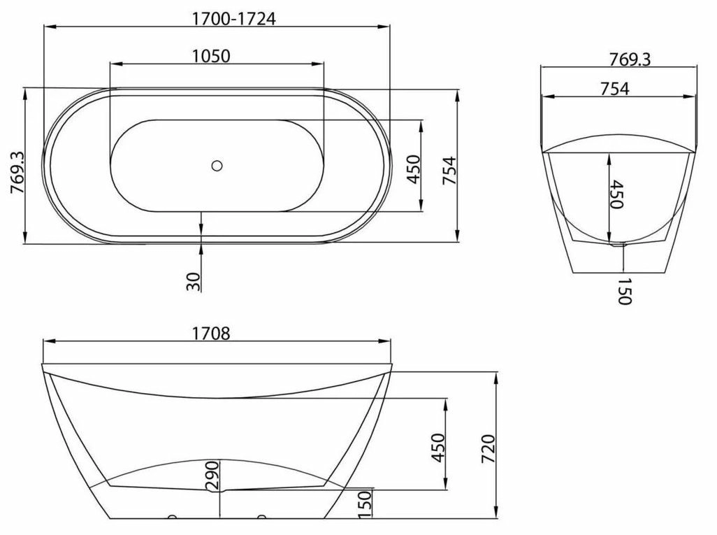 Если вы ищете баланс между компактностью и вместительностью, ванна Grossman GR-2104 Galaxy — ваш идеальный выбор. Её классические размеры 170x75 см считаются оптимальными для большинства ванных комнат: они не требуют много места для установки, но при этом дарят ощущение простора. А полезный объем в 300 литров гарантирует, что места для полноценного отдыха и расслабления будет достаточно.